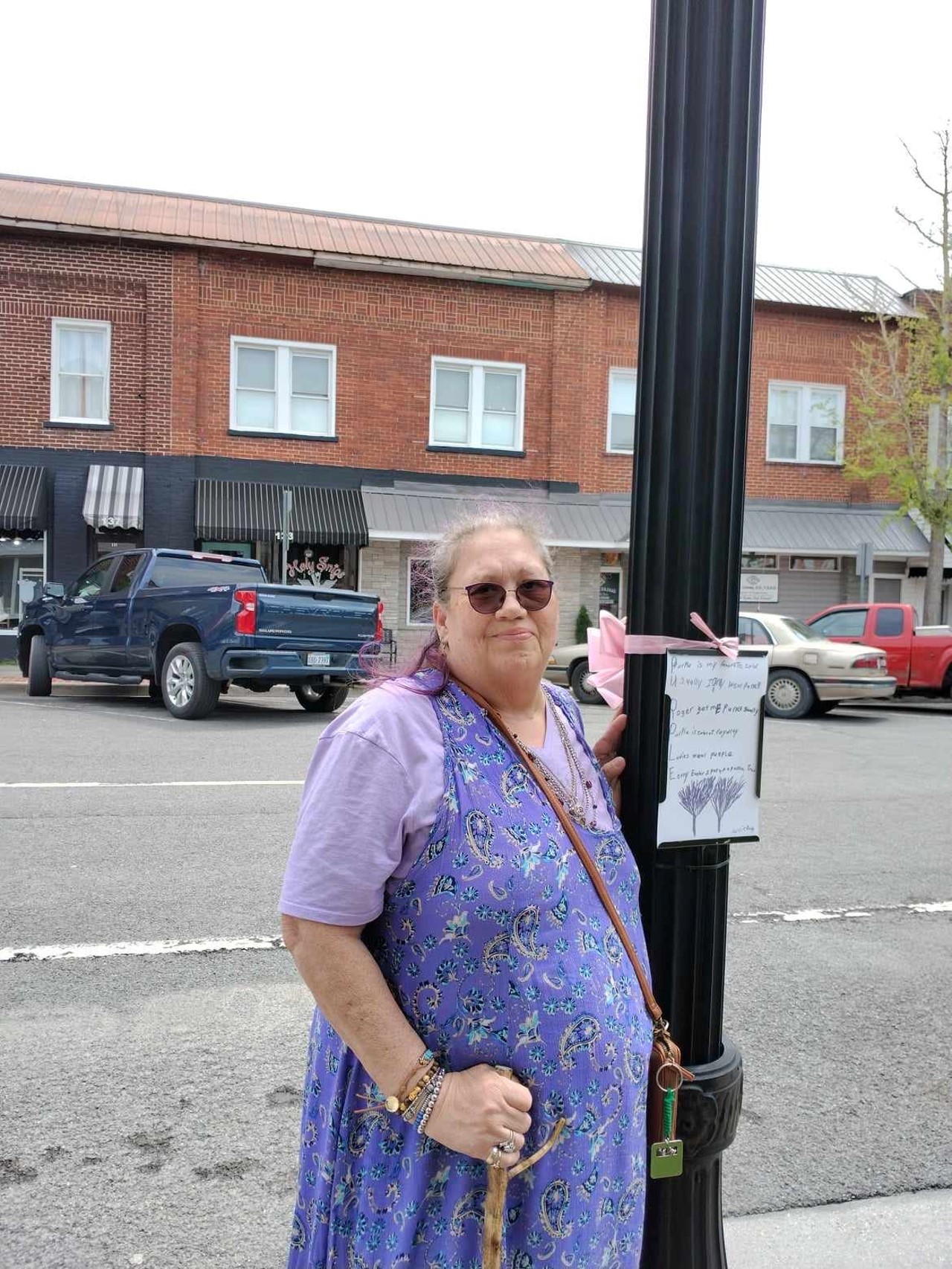 An attendee of Community Central at Richlands walking the Storybook Walking Trail in downtown Richlands